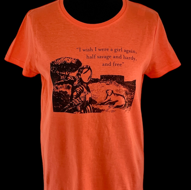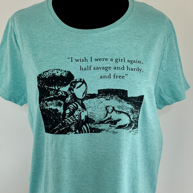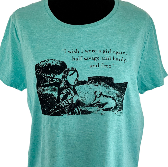 Original design inspired by Wuthering Heights & Emily Brontë with her beloved animals on Top Withens, featuring quote ‘I wish I was a girl again, half savage and hardy and free’
